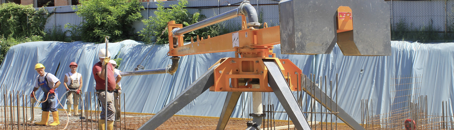 pričvršćen za hidraulični distributer betona, što omogućava brzo postavljanje betona na velike i visoke površine ili je u pitanju samo gumeno crevo za ručno postavljanje betona.